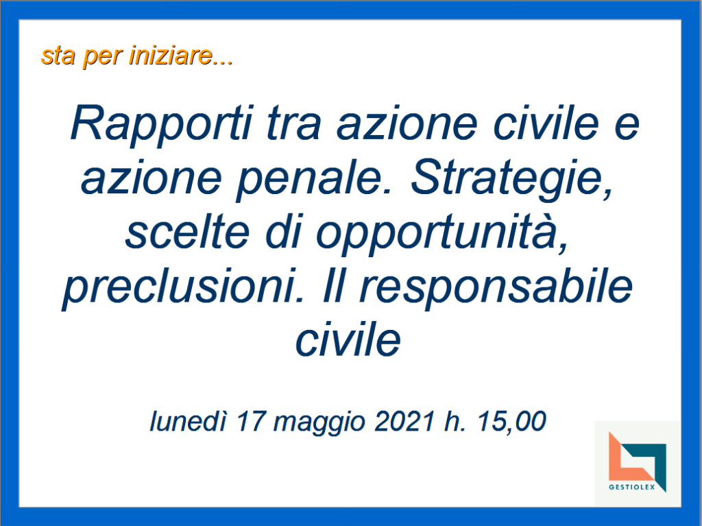 [FAD] Rapporti tra azione civile e azione penale. Strategie, scelte di opportunità, preclusioni. Il responsabile civile