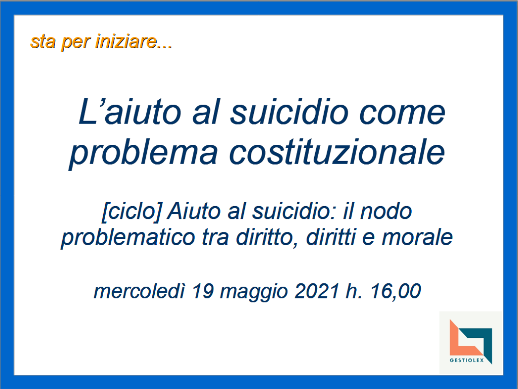 [FAD] L’aiuto al suicidio come problema costituzionale (ciclo: Aiuto al suicidio: il nodo problematico tra diritto, diritti e morale)