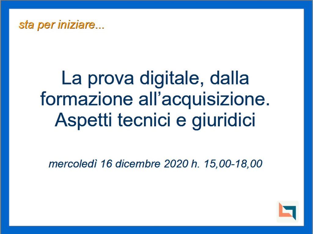 [FAD] La prova digitale, dalla formazione all’acquisizione. Aspetti tecnici e giuridici
