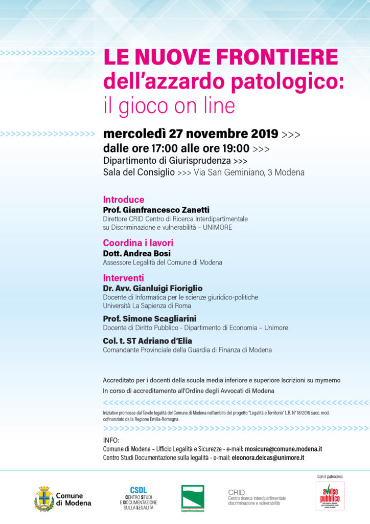 Comune di Modena – Le nuove frontiere dell’azzardo patologico: il gioco on line