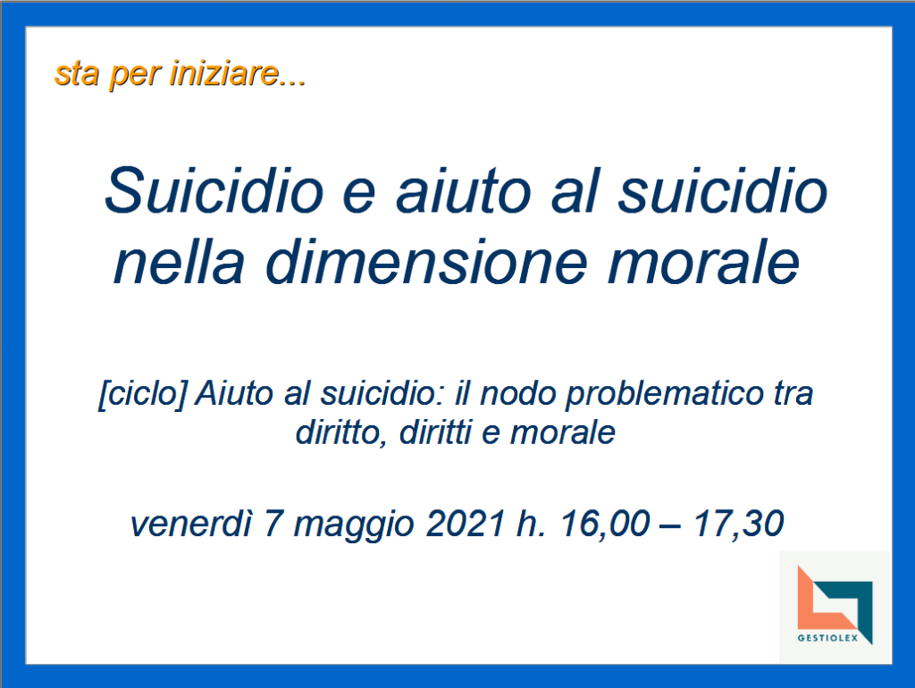 [FAD] Suicidio e aiuto al suicidio nella dimensione morale (ciclo: Aiuto al suicidio: il nodo problematico tra diritto, diritti e morale)
